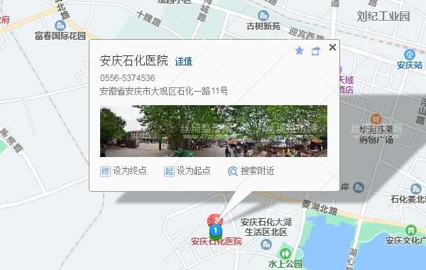 安慶站90米向南步行 到 火車站7站乘 7路 (振風塔方向) 到 高花亭290米向西步行 到 安慶石化醫(yī)院