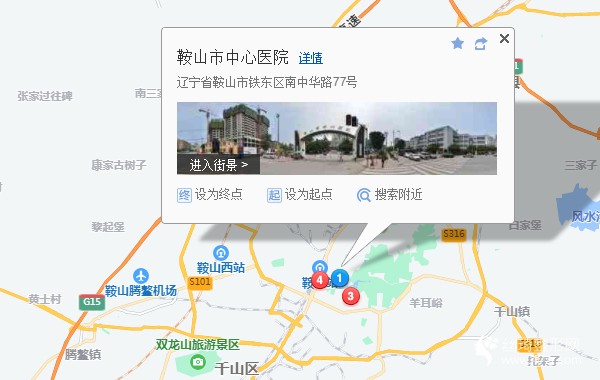 鞍山站360米向南步行 到 鞍山站2站乘 43路 (萬華街方向) 到 烈士山550米向東北步行 到 鞍山市中心醫(yī)院