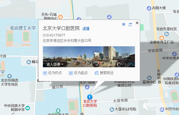 北京西站170米向北步行 到 北京西站 B東南入口進站4站乘 地鐵9號線 (國家圖書館方向) 到 國家圖書館 B口(東北口) 出站1.1公里向北步行 到 北京大學口腔醫(yī)院