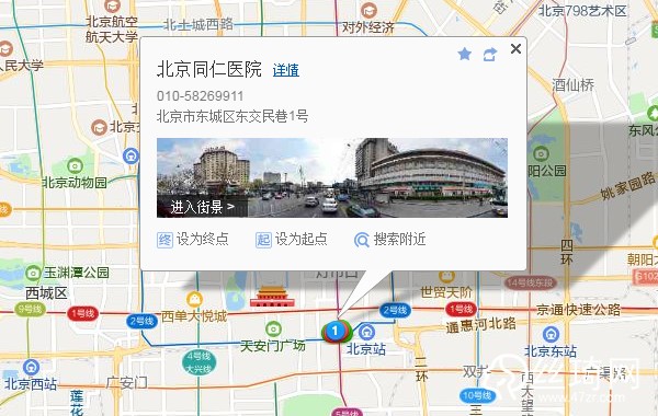 北京站410米向東步行 到 北京站東1站乘 9路 (金家村橋東方向) 或 622路到 崇文門西320米向北步行 到 北京同仁醫(yī)院