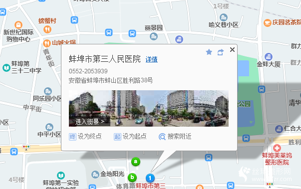 蚌埠站380米向西北步行 到 鳳陽路.火車站3站乘 101路 (張公山首末站方向) 到 第三人民醫(yī)院140米向東步行 到 蚌埠市第三人民醫(yī)院
