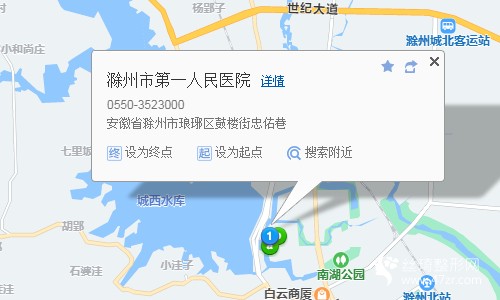 滁州站580米向東北步行 到 滁州站10站乘 105路 (滁州北站方向) 到 中國人壽8米站內(nèi)換乘 K1路4站乘 K1路 (北湖公交換乘中心方向) 或103路 108路 到 南大橋720米向西步行 到 滁州市第一人民醫(yī)院