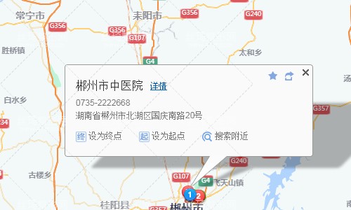 郴州站160米向南步行 到 道口5站乘 36路 (高斯貝爾方向) 到 羅家井300米向西步行 到 郴州市中醫(yī)院