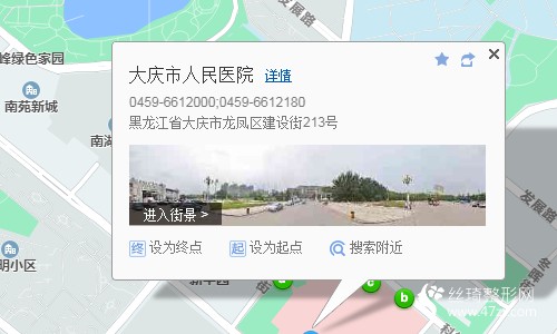 大慶站330米向北步行 到 公交總站24站乘 35路 (東風(fēng)九車隊(duì)方向) 到 9-75號(hào)樓590米向東南步行 到 大慶市人民醫(yī)院