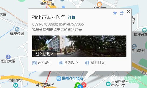 福州南站80米向西南步行 到 福州火車南站 F口進(jìn)站17站乘 地鐵1號線 (象峰方向) 到 福州火車站 D2口 出站950米向東南步行 到 福州市第八醫(yī)院