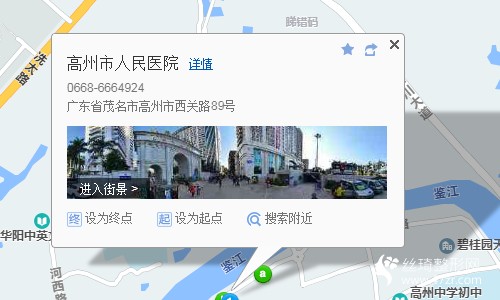 高州火車站-出站口8米向南步行 到 火車站(高州)9站乘 高州8路 (高州車站方向) 到 鑒江橋頭660米向北步行 到 高州市人民醫(yī)院