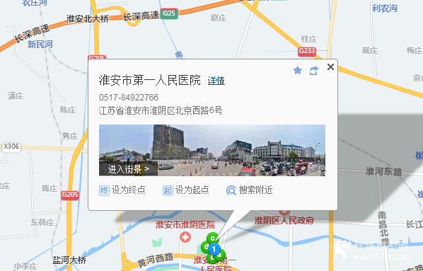 淮安站2.3公里向西南步行 到 古末口17站乘 有軌電車1號線 (體育館方向) 到 體育館310米向東步行 到 清中5站乘 1路 (淮安火車站方向) 或 Y100路到 西馬路530米向西步行 到 淮安市第一人民醫(yī)院