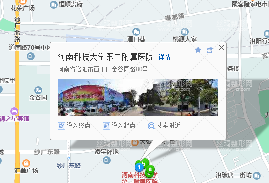 洛陽站310米向東南步行 到 金谷園路春晴路口1站乘 201路 (龍門公路客運中心方向) 或 48路 5路 1路 到 金谷園路健康東路口40米向東南步行 到 河南科技大學第二附屬醫(yī)院。