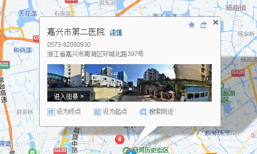 嘉興南站780米向北步行 到 高鐵嘉興南站10站乘 275路 (王江涇鎮(zhèn)公交樞紐站方向) 到 中環(huán)東路望湖路2米向東步行 到 中環(huán)東路望湖路9站乘 9路 (秀洲區(qū)行政中心公交樞紐站方向) 到 招商銀行南湖支行(市第二醫(yī)院南)260米向北步行 到 嘉興市第二醫(yī)院