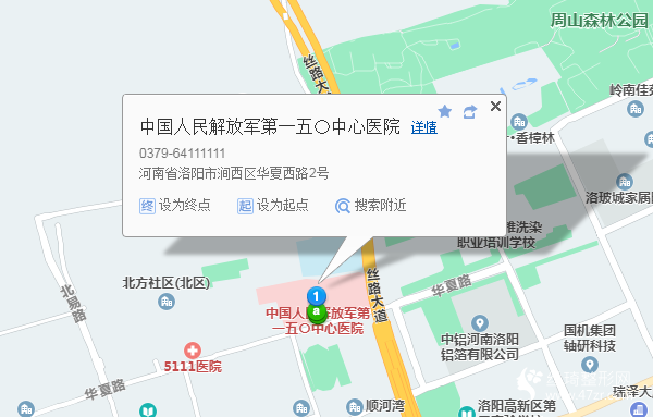 洛陽站380米向東步行 到 洛陽汽車站2站乘 洛陽-洛寧 (洛寧汽車站方向) 或677路 到 滹沱(招呼站)1公里向西北步行 到 洛陽解放軍150醫(yī)院