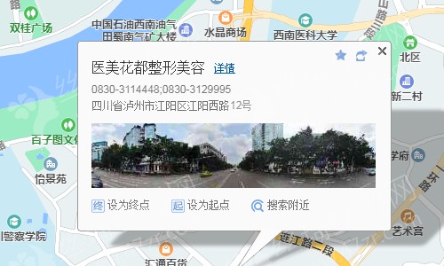 瀘州客運(yùn)中心站50米向西步行 到 瀘州客運(yùn)中心站13站乘 128路 (永寧路東方向) 到 市政府250米向西北步行 到 醫(yī)美花都整形美容,