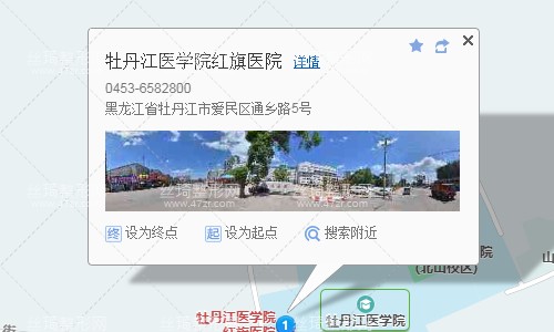 牡丹江站180米向西南步行 到 火車站西5站乘 402路 (南方商城方向) 到 康安路轉(zhuǎn)盤道1.5公里向西北步行 到 牡丹江醫(yī)學(xué)院紅旗醫(yī)院