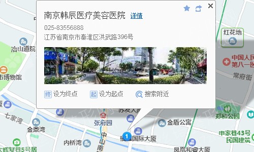 南京站540米向北步行 到 南京站 4口 進(jìn)站6站乘 地鐵1號線 (中國藥科大學(xué)方向) 到 張府園 2口 出站430米向東南步行 到 南京韓辰醫(yī)療美容醫(yī)院,