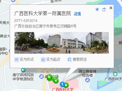 南寧站310米向東南步行 到 火車站8站乘 32路 (青秀山北門方向) 到 醫(yī)科大一附院270米向南步行 到 廣西醫(yī)科大學第一附屬醫(yī)院,