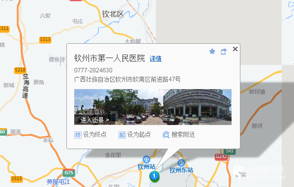 欽州站80米向東南步行 到 火車西站6站乘 6路 (英華學(xué)院方向) 到 欽州灣向陽路口1.1公里向東步行 到 欽州市第一人民醫(yī)院