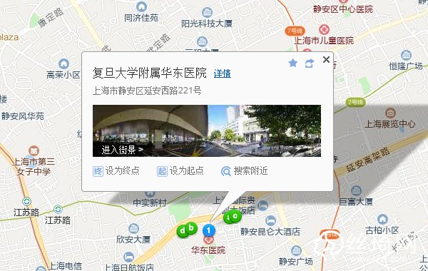 上海長途汽車站1.1公里向東步行 到 中山北路 1口 進(jìn)站4站乘 地鐵1號線 (莘莊方向) 到 人民廣場430米向東步行 到 人民廣場2站乘 地鐵2號線 (徐涇東方向) 到 靜安寺 1口 出站780米向西南步行 到 復(fù)旦大學(xué)附屬華東醫(yī)院