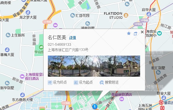 上海南站320米向北步行 到 上海南站6站乘 816路 (東平路衡山路方向) 到 肇嘉浜路天平路660米向北步行 到 名仁醫(yī)美
