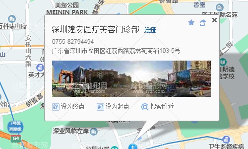 深圳站150米向東北步行 到 羅湖 E1口 進(jìn)站10站乘 地鐵1號線(羅寶線) (機場東方向) 到 車公廟 B口 出站1.3公里向西北步行 到 深圳建安醫(yī)療美容門診部,