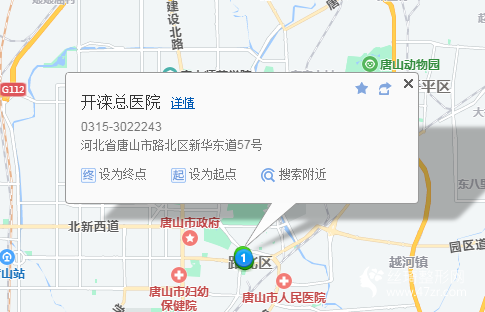 唐山站380米向南步行 到 唐山站東廣場13站乘 2路 (啟新立交橋方向) 或 18路到 路北區(qū)委區(qū)政府200米向西步行 到 開灤總醫(yī)院