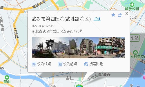 武漢站60米向東北步行 到 武漢火車站 西入口進(jìn)站18站乘 軌道交通4號線 (柏林方向) 到 鐘家村 B口 出站400米向東步行 到 漢陽大道鐘家村2站乘 707路 (興業(yè)路溫馨路方向) 或 608路 705路 到 武勝路家樂福350米向西南步行 到 武漢市第四醫(yī)院