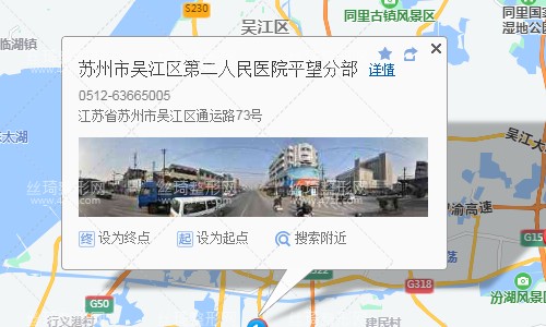 吳江汽車客運(yùn)站80米向西步行 到 吳江汽車站北2站乘 吳江盛澤專線 (盛澤廣場方向) 到 平望學(xué)才路口390米向南步行 到 蘇州市吳江區(qū)第二人民醫(yī)院平望分部