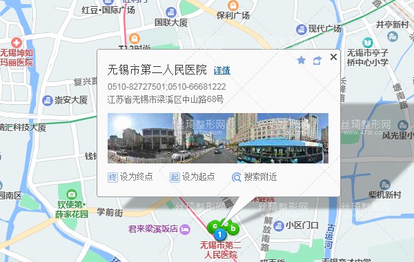 無錫站70米向南步行 到 火車站3站乘 763路 (鴻山場站方向) 到 八佰伴(學前東路)340米向南步行 到 無錫市第二人民醫(yī)院,