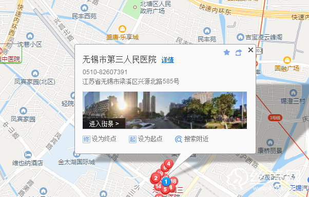 無錫東站50米向東南步行 到 無錫東站 2口 進站12站乘 地鐵2號線 (梅園開原寺方向) 到 東林廣場 3口 出站210米向東步行 到 東門3站乘 767路 (無錫汽車站(錫滬西路)方向) 到 北柵口(無錫舊貨市場)320米向西北步行 到 無錫市第三人民醫(yī)院無錫市第三人民醫(yī)院