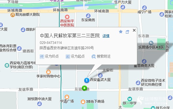 西安火車站880米向南步行 到 五路口 A口 進站4站乘 地鐵4號線 (航天新城方向) 到 西安科技大學 A口 出站620米向西北步行 到 中國人民解放軍第323醫(yī)院