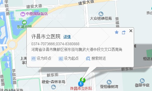 許昌汽車站370米向西北步行 到 火車站公交樞紐12站乘 5路 (東鵬街首末站方向) 到 徐灣社區(qū)1.1公里向南步行 到 許昌市立醫(yī)院,