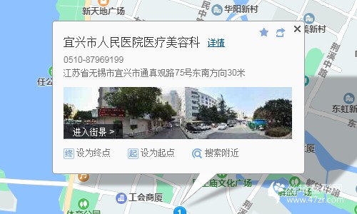 宜興站480米向西步行 到 高鐵站11站乘 宜興116路 (蔬批公交場站方向) 到 王府410米向東步行 到 宜興市人民醫(yī)院醫(yī)療美容科