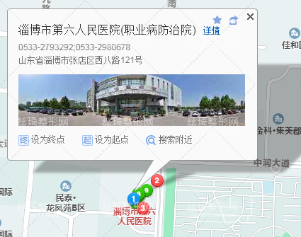 淄博站330米向東北步行 到 火車站18站乘 159路 (義烏商城客運站方向) 到 市職業(yè)病防治院100米向南步行 到 淄博市第六人民醫(yī)院(職業(yè)病防治院)