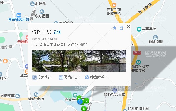 遵義站2.9公里向西北步行 到 白楊小區(qū)8站乘 10路 (市博物館方向) 到 醫(yī)學院120米向西南步行 到 遵義醫(yī)學院附屬醫(yī)院。