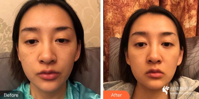 其實(shí)這次做這個(gè)祛斑幾乎沒怎么影響到我的生活,也沒有說破皮之類的,完全不影響美觀怕出門之內(nèi)的,開始的時(shí)候我覺得面部表現(xiàn)沒有特別一下子的改變,因?yàn)樽龅寞煶搪锎螖?shù)多了對(duì)比之前面部照片的情況就改變相當(dāng)?shù)拇蟆?